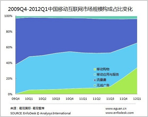 易觀:2012Q1中國(guó)移動(dòng)互聯(lián)網(wǎng)市場(chǎng)規(guī)模突破300億