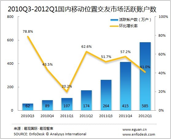 易觀:2012Q1國內(nèi)移動位置交友應(yīng)用規(guī)模達(dá)4338萬戶