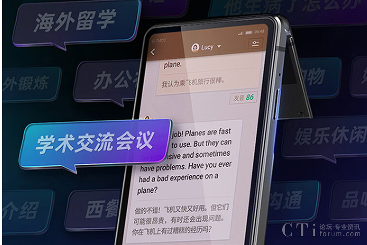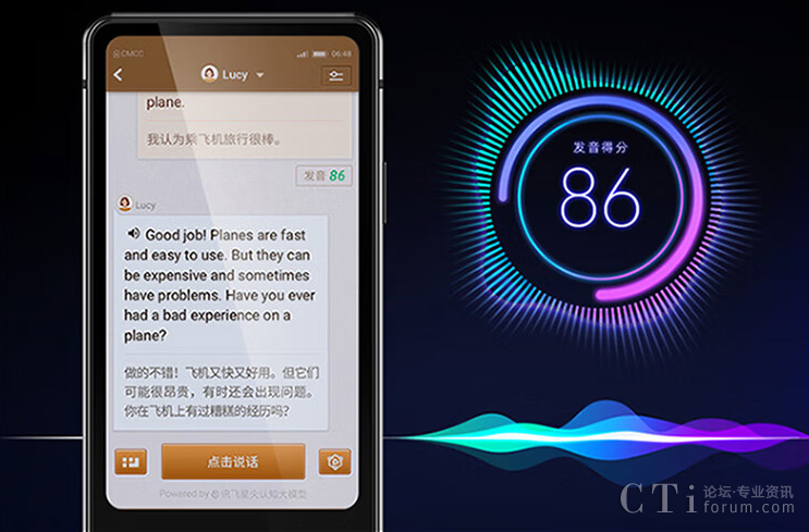 AI教練可以隨時(shí)隨地和用戶(hù)一對(duì)一地聊天,并會(huì)將聊天內(nèi)容用中英文對(duì)照的方式顯示在屏幕上,同時(shí)還會(huì)對(duì)用戶(hù)的口語(yǔ)發(fā)音進(jìn)行智能打分。