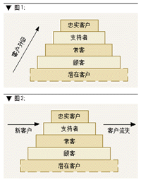 ----表面上看來(lái),兩者似乎一樣,可是客戶流動(dòng)的方向展示著交易營(yíng)銷和關(guān)系營(yíng)銷的根本區(qū)別。因此從圖形上我們可以得到客戶關(guān)系管理考核的幾個(gè)基本指標(biāo):