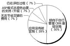 大量跡象表明,越來越多的通信提供商未來將與ASP合作實(shí)施CRM應(yīng)用。51% 的被調(diào)查者表示他們?cè)敢庾孕泄芾鞢RM基礎(chǔ)設(shè)施,但49%的被調(diào)查者稱他們會(huì)考慮與ASP合作。