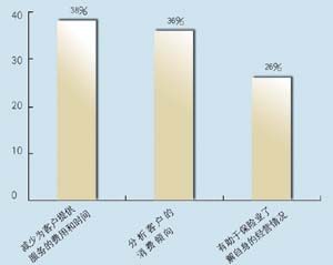關(guān)于所應用的CRM類型,有5家是呼叫中心,5家是分析型,7家是運營型,2家是屬于大型企業(yè)CRM。其中13家擁有動態(tài)客戶數(shù)據(jù)庫,占到68.4%。這其中又有42%利用數(shù)據(jù)庫作客戶記錄,26.3%作為客戶支持使用,15.7%用作統(tǒng)計分析,另有16%作為市場推廣。保險公司與客戶聯(lián)系的方式,從重要性來看依次為:面對面\電話\網(wǎng)絡\傳真,這說明保險公司對于與客戶進行人性化交流的重視。在問到CRM的主要作用時,有5家表示使用CRM有助于保險業(yè)了解自身的經(jīng)營情況,幫助公司準確地發(fā)現(xiàn)贏利客戶和具有贏利潛力的客戶,有7家認為使用CRM有助于分析客戶的消費傾向,有7家認為使用CRM有助于優(yōu)化信息和資源管理。在問到是否愿意為像CRM系統(tǒng)這樣的咨詢或服務付費時,有11家表示愿意,占到57.8%。