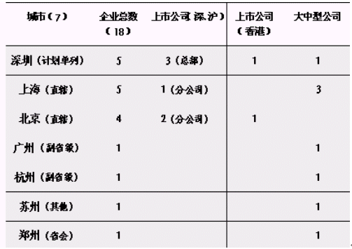 圖1:截止2003年10月底統(tǒng)計的7座城市18家導入CRM企業(yè)的分布情況。