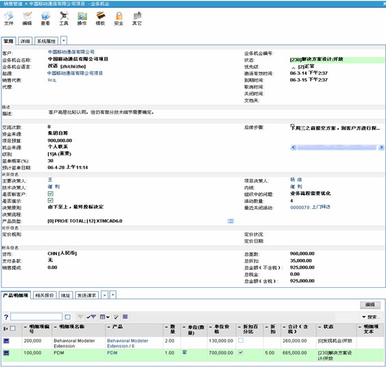 具體來講,企業(yè)的銷售人員通過VamCRM定義的銷售管道實現(xiàn)對銷售工作的流程化跟進和管理;玖鞒淌牵菏紫蠕N售人員通過各種途徑獲得客戶信息,與之溝通聯(lián)系,有業(yè)務(wù)進一步發(fā)展的可能后形成相應(yīng)的銷售線索,便開始切入銷售管道。然后,通過相關(guān)業(yè)務(wù)活動與客戶進行接觸,支持業(yè)務(wù)的不斷發(fā)展,隨后,形成業(yè)務(wù)機會。若該項業(yè)務(wù)進入實質(zhì)性的需求分析及合同的前期談判階段,即升級為系統(tǒng)的報價階段,可以對客戶的需求進行報價、出具解決方案。接著,開展一系列商務(wù)公關(guān)活動,以雙方都可接受的實現(xiàn)方式簽訂合同,即在系統(tǒng)里形成銷售訂單。最終促進形成發(fā)貨單,進入實施、合同執(zhí)行、收款等相關(guān)后續(xù)的環(huán)節(jié)。與此同時,所有與現(xiàn)實中同客戶合約相關(guān)的信息都可以以統(tǒng)一的形式在系統(tǒng)中存儲,并且可以在獨立銷售階段間輕松遞進轉(zhuǎn)換,有效提高系統(tǒng)的易用性和信息統(tǒng)一的關(guān)聯(lián)程度。每一個銷售階段都隱含著不同的側(cè)重目標,從線索挖掘、銷售過程追蹤、直至交易達成,企業(yè)可以對銷售過程進行全面過程化管理,并且各個流程之間信息高度關(guān)聯(lián)和集成統(tǒng)一。同時,VamCRM融合了經(jīng)眾多企業(yè)多年實踐證明非常有效的MEDDIC銷售方法,不但能夠使銷售流程更加順暢,更能夠幫助企業(yè)深度把握客戶需求,掌握客戶購買習慣,明顯提升銷售業(yè)績。