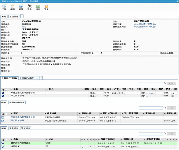 VamCRM的營銷戰(zhàn)役,可以自動統(tǒng)計有多少線索成功轉(zhuǎn)化為業(yè)務(wù)機會,有多少線索最終簽單,從而使得企業(yè)相關(guān)管理人員可以對營銷戰(zhàn)役的效果得到直觀的量化評估,對市場活動的投資收益做到心中有數(shù)。