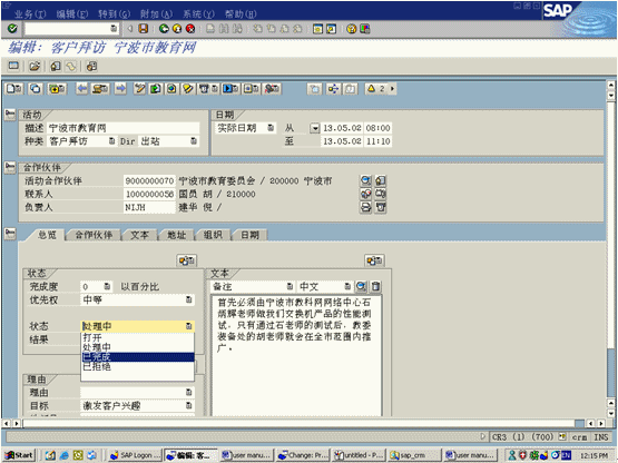 Explorer的層級樹結(jié)構(gòu)顯示客戶間的業(yè)務(wù)關(guān)系。通過報(bào)價菜單選項(xiàng)中預(yù)定義報(bào)價信息使用訂單輸入功能?梢赞D(zhuǎn)化成為訂單,后臺功能與SAPR/3集成可以實(shí)現(xiàn)。