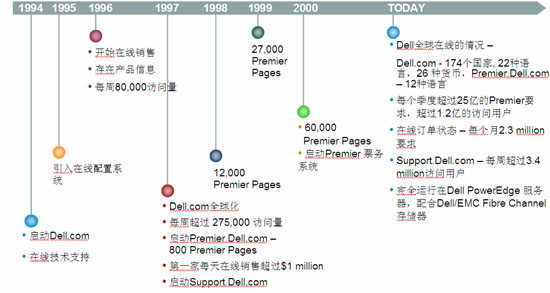 Dell從2004年開始,在中國大陸推出改服務(wù),開始的服務(wù)對象都是一些跨國公司在國內(nèi)的分支機(jī)構(gòu),到現(xiàn)在為止,已經(jīng)有1000個用戶,通過Premier下單的金額,也從開始的每月不足10萬美元,到現(xiàn)在的每月超過400萬美元。
