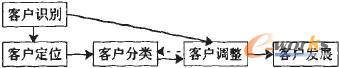 筆者認(rèn)為,客戶識(shí)別是貫穿整個(gè)客戶關(guān)系管理運(yùn)作流程的一條主線,也是企業(yè)判斷是否進(jìn)行以及如何進(jìn)行客戶獲取、客戶保持、關(guān)系終止活動(dòng)的根本依據(jù)。這里筆者把客戶識(shí)別可以分為定位客戶、客戶分類、調(diào)整客戶和發(fā)展客戶幾個(gè)步驟(見(jiàn)圖1)。