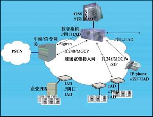 本地軟交換通過中繼/信令網(wǎng)關(guān)與PSTN互通,用戶接入終端形式通常有IAD(集成接入設(shè)備)和IP phone。IAD提供普通電話POTS接口,容量從單門到幾百門。IAD根據(jù)容量可以放置在用戶室內(nèi)、樓道或?qū)S脵C(jī)房里。IP