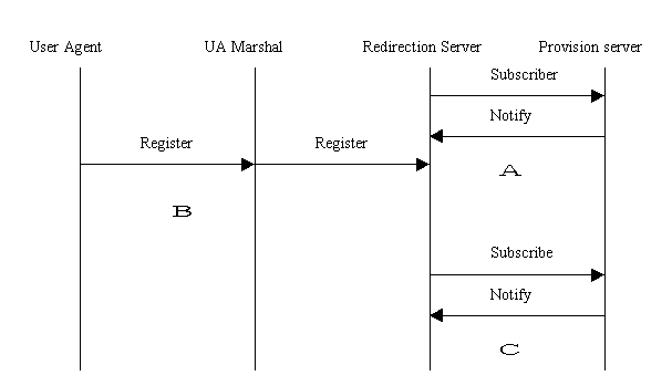 1> 在A(yíng)階段當(dāng)啟動(dòng)Redirection Server(RS)的時(shí)候,RS向Provisioning Server(PS)發(fā)送SubScribe消息,取得合法的用戶(hù)列表;