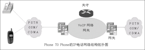 雖然從方式上看,IP話音業(yè)務包括了Phone TO Phone、PC TO Phone及PC TO PC三種方式,但是國內(nèi)主流的IP電話網(wǎng)絡仍然是以Phone TO Phone方式進行,其網(wǎng)絡拓撲結(jié)構(gòu)如圖所示。