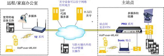 SonicWALL利用其分布式無線解決方案將完全的VoIP安全性擴展到附屬的無線網(wǎng)絡(luò)。無論是利用內(nèi)置802.11無線功能的TZ 170系列,還是配合使用PRO系列設(shè)備和SonicPoint