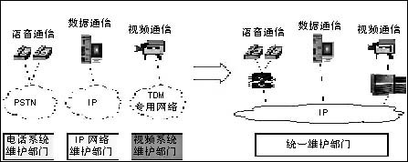 通過(guò)IP化改造,原來(lái)分別管理IP網(wǎng)絡(luò)和電話網(wǎng)絡(luò)的兩個(gè)部門(mén)可以有效整合,有助于簡(jiǎn)化機(jī)構(gòu)設(shè)置和工作流程,實(shí)現(xiàn)對(duì)行業(yè)通信系統(tǒng)的統(tǒng)一管理,提高行業(yè)科技部門(mén)的工作效率(見(jiàn)圖1)。