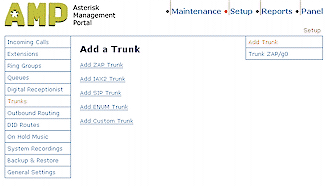 有四個不同的中繼類型可供選擇:ZAP, IAX2, SIP和ENUM,再加上一個自定義類型,你所選擇的VoIP服務(wù)提供商應(yīng)該有相關(guān)的信息來指導(dǎo)你選擇哪一個具體的類型。