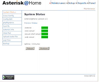 web GUI也被認為是Asterisk管理入口(Asterisk Management Portal,AMP),使用它可允許你讀取和編輯數(shù)據(jù)庫,查看報告,更改設(shè)置等(圖3)。