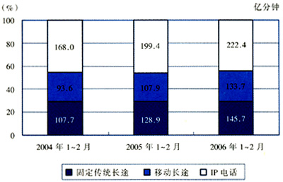 表1 2006年1-2月固定市話與移動(dòng)市話通話量