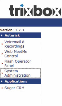 完成這些工作之后,用戶(hù)即可進(jìn)入Web界面進(jìn)行后期配置。使用Web瀏覽器訪問(wèn)Trixbox系統(tǒng),首頁(yè)是幾個(gè)主要組件管理界面的入口,如圖3所示,其中“System