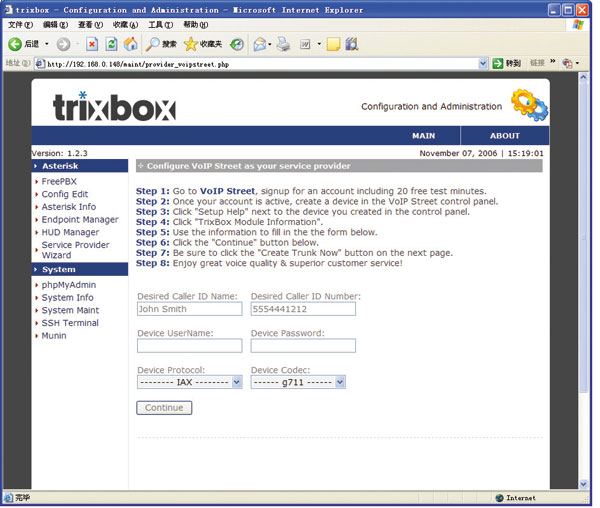 值得一提的是,在一些高級(jí)應(yīng)用方面,Trixbox易于配置的優(yōu)勢(shì)更加明顯,例如總機(jī)功能,以往通過(guò)命令行編輯文本配置文件較難實(shí)現(xiàn),但使用Trixbox則變得非常簡(jiǎn)單,使用Digital