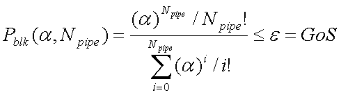 上式中GoS(Grade of Service)表示服務等級,即最大可容忍的阻塞概率。公式(1)表示當鏈路話務量為α,流量管道已經承載了