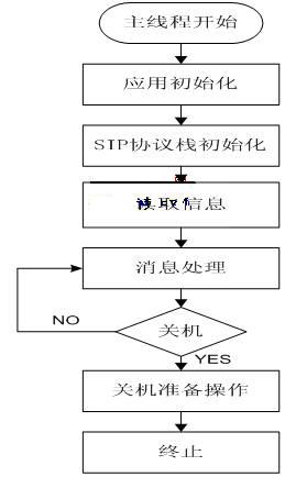 系統(tǒng)軟件是基于SIP協(xié)議棧的基礎(chǔ)上實(shí)現(xiàn)的。由于SIP協(xié)議棧采用模塊化設(shè)計思想,因此,系統(tǒng)軟件可以直接調(diào)用協(xié)議棧各模塊提供的API。軟件應(yīng)用模塊的消息獲取線程是實(shí)時獲取協(xié)議棧處理的結(jié)果(以消息或事件的形式存儲在協(xié)議棧消息隊列中),并把它轉(zhuǎn)換成系統(tǒng)應(yīng)用的消息結(jié)構(gòu)存放在應(yīng)用模塊的消息隊列中。圖2是軟件應(yīng)用模塊的程序流程圖。