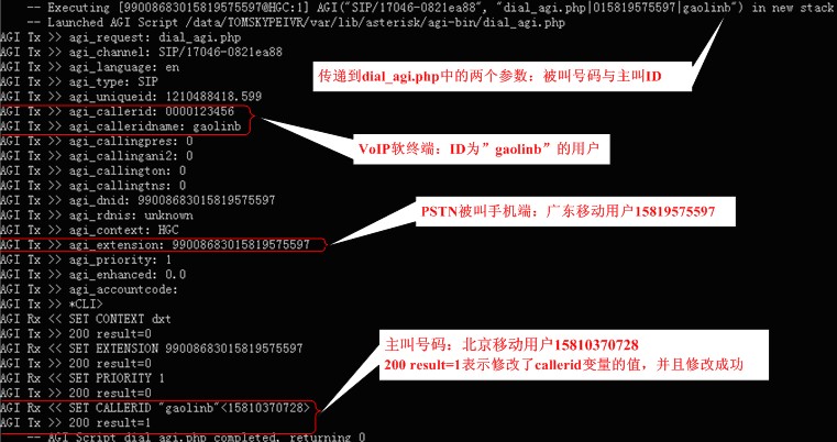 圖3 Asterisk服務(wù)器上AGI的輸入輸出信息