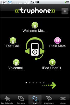 互聯(lián)網(wǎng)電話公司Truphone公司最近在App Store放出了其免費(fèi)的音樂程序,這款程序可以讓iPod Touch的用戶互相之間通過WiFi連接撥打或接聽VoIP電話,并可使用Google