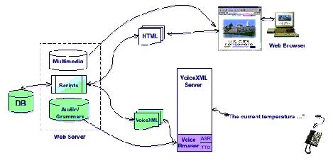 新的語音技術(shù)可以創(chuàng)建出對話驅(qū)動(dòng)的應(yīng)用程序,例如語音識別技術(shù)(ASR),語音合成技術(shù)(TTS)以及記錄和回放數(shù)字化語音在 PC 和服務(wù)器(分發(fā)到客戶端設(shè)備)上 。Voice XML 提供了一種與技術(shù)無關(guān)的語言,可以用在語音應(yīng)用程序。這些應(yīng)用程序?qū)⒑蠖颂幚碚Z音的服務(wù)和處理機(jī)制與前端基于 Voice XML 的表示層分離開。例如,一個(gè)精心設(shè)計(jì)的 Web 站點(diǎn)可以輕而易舉地支持語音驅(qū)動(dòng)的瀏覽器(比如您很可能在移動(dòng)電話上會使用的那種),同時(shí)它有能支持其它的瀏覽器(比如一個(gè) WAP 瀏覽器或 HTML 瀏覽器)。當(dāng)接受到來自瀏覽器的最初請求時(shí),服務(wù)器將監(jiān)測出瀏覽器的類型。如果瀏覽器被確認(rèn)為一個(gè)語音瀏覽器,服務(wù)器將返回對應(yīng)的 Voice XML 頁面。
