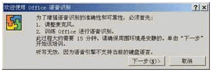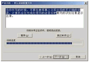 一般情況下,我們最好在語音識別功能安裝結(jié)束后立即按照系統(tǒng)提示單擊"下一步"對語音識別功能進(jìn)行訓(xùn)練,整個(gè)訓(xùn)練過程包括調(diào)整麥克風(fēng)和訓(xùn)練Office進(jìn)行語音識別兩部分(如圖3所示)。