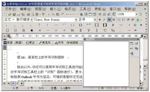 安裝成功后,你會(huì)從圖16中看到一個(gè)手寫圖標(biāo),接下來我們就可以使用手寫識別功能啦。首先,你必須在屏幕上選定書寫區(qū)域,可以是屏幕上類似于筆記本橫格紙的輸入板,也可以在屏幕上任意的位置書寫。我們可通過使用手寫輸入設(shè)備或移動(dòng)鼠標(biāo)墊上的鼠標(biāo)來形成文字,從而完成書寫,手寫文字將被自動(dòng)識別,并輸入到程序的插入點(diǎn)處。就像通常在紙張表面上一樣,你可以使用草書、印刷體或二者兼而有之地進(jìn)行書寫,書寫時(shí)不必每寫完一個(gè)字母后作停頓,可輸入整個(gè)單詞并在單詞之間留出空格。