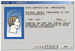 點(diǎn)擊"下一步"按鈕后,就會(huì)看到如圖11所示的對話框,請根據(jù)窗口中的提示對話信息朗讀,如果朗讀正確,對話信息將會(huì)反白顯示,如果你朗讀錯(cuò)誤,請重新進(jìn)行。