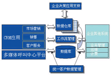 一個(gè)完整的客戶關(guān)系管理系統(tǒng)應(yīng)該包括:多媒體呼叫中心系統(tǒng)、客戶關(guān)系管理應(yīng)用、統(tǒng)一客戶數(shù)據(jù)管理系統(tǒng)和數(shù)據(jù)倉庫、工作流管理系統(tǒng)和企業(yè)決策應(yīng)用支持系統(tǒng)。