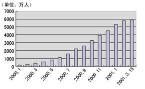 從使用即時(shí)通訊的用戶數(shù)目來(lái)看,其增長(zhǎng)速度十分驚人,到2001年3月份,其總量達(dá)到了6000萬(wàn)人。這主要得益于中國(guó)這兩年互聯(lián)網(wǎng)發(fā)展速度迅猛,而且這還與人們對(duì)于即時(shí)通訊的需求在增加有關(guān),很多人在網(wǎng)上有兩個(gè)甚至三個(gè)或更多的OICQ號(hào)碼以便與不同的伙伴聯(lián)系。