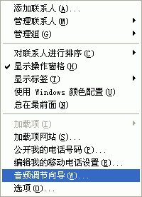 同樣,首先你應(yīng)該在MSN Messenger中調(diào)節(jié)你的音頻和視頻設(shè)備。選擇工具->音頻調(diào)節(jié)向?qū)?圖8)就會彈出“音頻和視頻調(diào)諧向?qū)А钡拇翱?圖9),請根據(jù)這個向?qū)У奶崾,一步一步進行測試和調(diào)節(jié)。