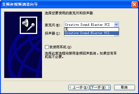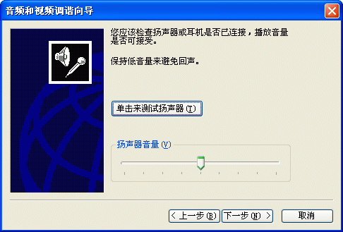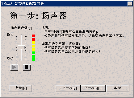 選擇幫助->音頻設(shè)備配置向?qū)?圖2),會彈出“音頻設(shè)備配置向?qū)А贝翱?圖3),這個向?qū)䦷椭銓P聲器、麥克風(fēng)、回音、網(wǎng)絡(luò)連接等項目進行標(biāo)準的測試和設(shè)置。