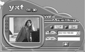 視頻目錄服務器的IP地址已在主界面中顯示,如“202.103.190.60”。你只需點擊前面有兩個人頭像的“連接目錄服務器”按鈕,就可以登錄視頻目錄服務器。這時你可看到所有登錄者的信息。如果你想同哪位朋友聊天,你可用鼠標雙擊你想與之聊天的朋友的信息,WebMeeting會馬上為你進行聯(lián)系,接通后響起一陣電話鈴聲并會彈出一個名為“遠程視頻”的窗口,對方的視頻畫面會顯示在其中。用它來跟千里之外的朋友進行溝通真是方便,筆者就嘗試用它來進行QQ朋友“相面”;舉行遠程朋友聚會;親身示范教別人學習電腦使用及解決電腦故障;了解異地商品優(yōu)劣;欣賞異地風光(將攝像頭對準大街);甚至還可來個重要事件現(xiàn)場直播等等。