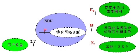 從現有的通信網過渡到未來的ISDN網,是長期的過程,這就必然存在ISDN網和現有通信網的互通問題。除了用戶設備接入ISDN的S/T參考點,ISDN定義了四個附加參考點用于網絡互聯(lián)。見下圖。