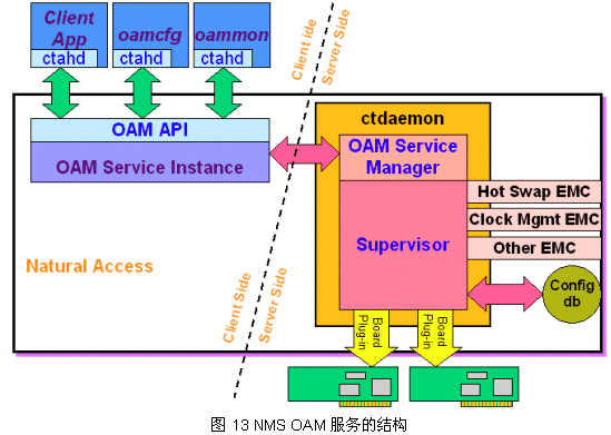 最后,我們這里給出NMS OAM服務(wù)的結(jié)構(gòu)模式,如圖13,可以看到前面的管理工具也是通過OAM API實現(xiàn)的