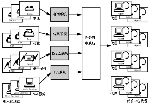 對通信媒體多樣性的支持是非常重要的,其中通信媒體包括電話、交互語音應(yīng)答、email、Web業(yè)務(wù)、傳真以及文件處理。為了處理通信媒體的多樣性,系統(tǒng)可能被分成多個子系統(tǒng),每個子系統(tǒng)對應(yīng)一種媒體類型。子系統(tǒng)將輸入的通信信息通知給負(fù)載序列,并且一直保留該通信信息,直到收到負(fù)載序列準(zhǔn)備路由該通信信息的消息。然后子系統(tǒng)按照負(fù)載序列的指令將通信信息發(fā)送到正確的代理坐席或設(shè)備。