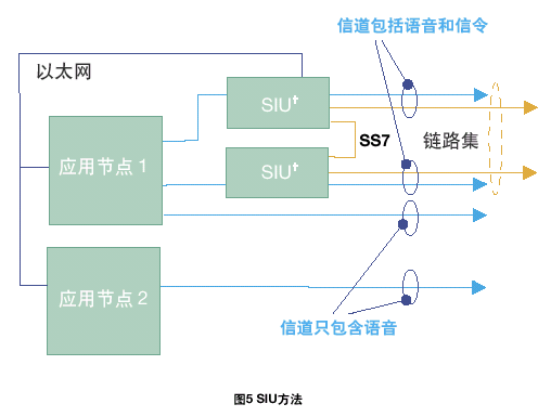 也可以采用物理上隔離應用媒介/電路處理和SS7協(xié)議狀態(tài)信息,使兩個應用程序可以利用兩個SS7接口進行通信(SIU采用這種方法)。物理隔離可以采用RSI和以太網來實現(xiàn)。