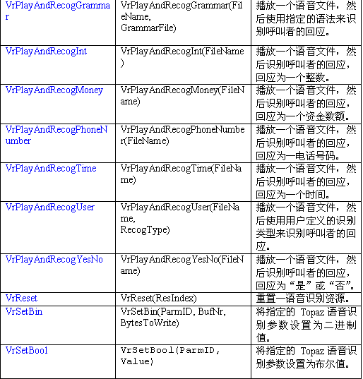 注:系統(tǒng)中CTADE_A為每一媒體資源創(chuàng)建一語音識(shí)別資源,由于語音引擎的限制,可能不能同時(shí)使用VR資源。