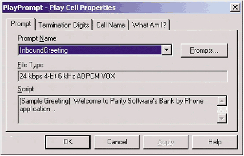 圖7: 特性對話框,用于為PlayPrimpt功能塊設(shè)置提示名稱和終端數(shù)字