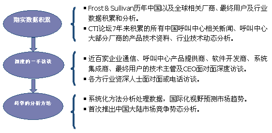Frost & Sullivan 和 CTI論壇(m.qcadult.com)共同組成的調(diào)研小組,在查閱了大量資料的基礎(chǔ)之上,以企業(yè)通信及呼叫中心的設(shè)備應(yīng)用、投資計(jì)劃以及相關(guān)廠商的市場(chǎng)表現(xiàn)為出發(fā)點(diǎn),通過(guò)對(duì)企業(yè)通信及呼叫中心重要應(yīng)用企業(yè)、在市場(chǎng)占主導(dǎo)地位的二十多家設(shè)備廠商、二十多家軟件開(kāi)發(fā)商、十幾家系統(tǒng)集成商、數(shù)家外包運(yùn)營(yíng)商的深度訪談,參閱內(nèi)部相關(guān)報(bào)告及數(shù)據(jù)庫(kù),對(duì)數(shù)據(jù)的來(lái)源和數(shù)據(jù)的準(zhǔn)確性進(jìn)行了詳細(xì)核對(duì)與論證;憑借參與調(diào)研人員的多年從業(yè)經(jīng)