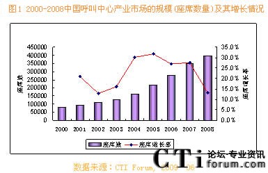 圖 1 2000-2008中國呼叫中心產業(yè)市場的規(guī)模
