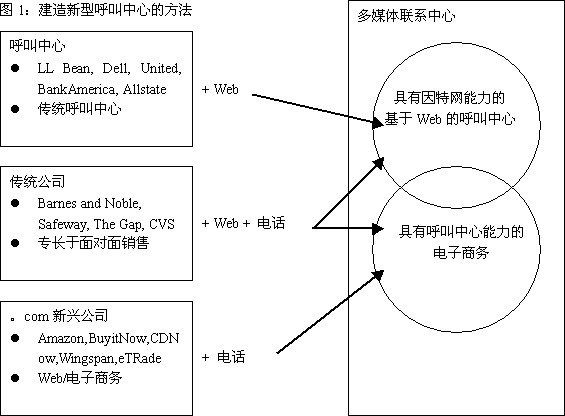 所有的公司都迫切希望找到一種途徑,使自己擁有“具有因特網(wǎng)能力的、web集成的呼叫中心”或“具有呼叫中心能力的電子商務(wù)網(wǎng)站”。圖1所示為實(shí)施方法的一個(gè)實(shí)例。但是,不管你如何稱呼它,如何達(dá)到目標(biāo),你都會(huì)面臨處理多媒體聯(lián)系的挑戰(zhàn)。多媒體聯(lián)系中心包括通過(guò)電話簽定合同和處理來(lái)自web的合同,可能是通過(guò)電子郵件,文本交談,電話呼叫,或通過(guò)web的語(yǔ)音呼叫。并且,大多數(shù)時(shí)候是由同一組人處理多種媒體服務(wù)。